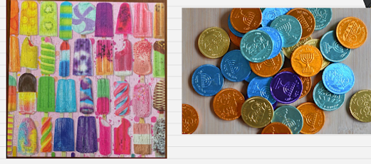 Interestingly, almost everyone knew that the coins had chocolate in them! One girl knew right away that the picture on the right is Hanukkah gelt, which was especially appropriate because at the time she was celebrating this tradition with her family.