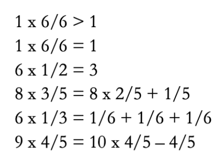 True or False Statements is a warm-up activity that reveals a lot about what students know about fraction multiplication, and it requires learners to consider what it means when we multiply with fractions. Here’s how it works. You show the class a statement such as 1 x 1/6 < 1. Ask them if they think it’s true or false. Give them some time to think, have them share their thinking with a partner, and then field a few ideas from the class. It’s a great way to engage students in argumentation. Here are a few more statements that you can share: