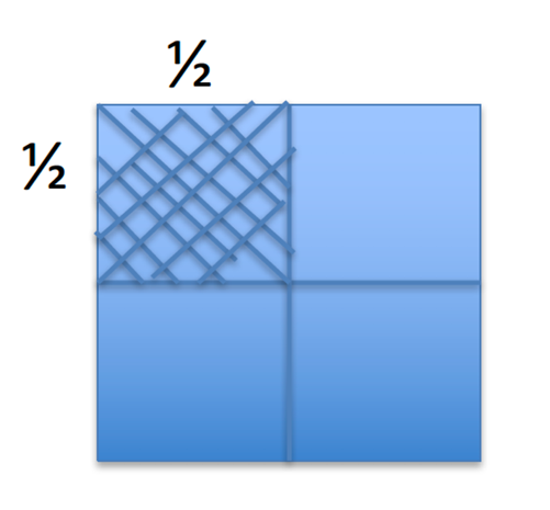 visually reveals the quantities. To model 1/2 x 1/2 for example, draw a square which represents the whole. Divide it in half vertically, then in half horizontally. Shade in the part that is one-half of a half of the rectangle (see my drawing below).