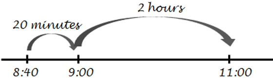 You might also ask them what activity might begin at 8:40 and end at 11:00. Then show them another example: