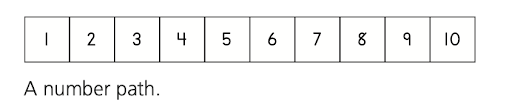 On a number path, numbers are represented by rectangles, and each rectangle can be counted. Young children are much more comfortable with counting things, so a number path, which is a counting model, often makes more sense to them than a number line, which is a measurement model. When working with a number path, students get valuable practice with one-to-one correspondence, number sequence, subitizing, cardinality, and seeing numbers in groups.