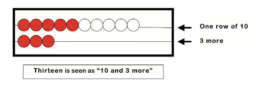 For example, in Mandarin all the teen numbers follow a consistent pattern that supports the base ten number system. The number 11 in Mandarin literally means ten-one, the number 12 means ten-two, and the number 13 means ten-three, and so on up to 19, reinforcing the idea that these teen numbers stand for a group of ten and some extra ones.