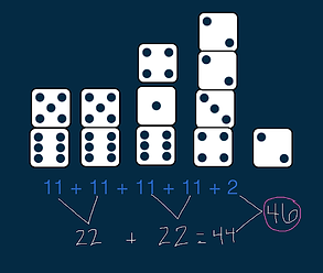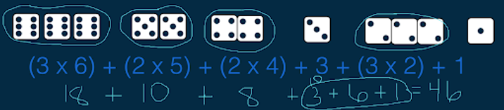- How are students organizing the dice after they roll? Do they randomly start adding the numbers together, or do they group the dice in ways that prompt them to find the total in a more efficient way?