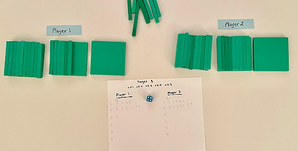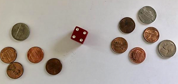 When playing this game in a virtual environment, we suggest that you play with a small group of students. We also suggest that you spend time modeling how to access the virtual manipulative links, how to use the virtual materials, and how to play the game: Virtual Coins Didax Dice
