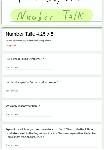 During distance learning, my students knew to check my Google Site daily. Our asynchronous number talks spanned 2-3 days. On the first day, I posted a number talk problem on my Google Site. I gave students instructions to use mental math to solve the problem with whatever strategy they chose. I then asked them to fill-out a Google Form.