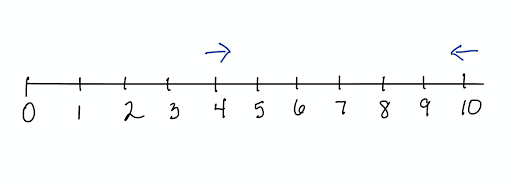 Playing the game with a group of kindergartners, I show them a number line from 0-10: