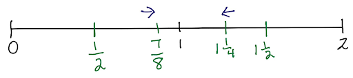 It gets tricky as the game goes on. The game board below shows where a class might be after 4 guesses. In this example, students are challenged to come up with numbers between ⅞ and 1 ¼. That pushes on students’ understanding of fractions in an intriguing way.